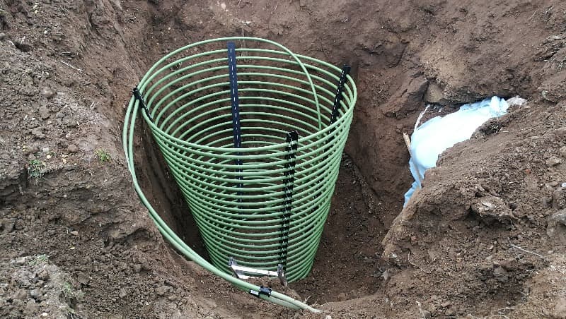 *Při instalaci košů je třeba dávat velký důraz na důkladné obsypání a hutnění. Je potřeba koš postupně obsypávat vytříděnou zeminou a často hutnit např. prolíváním většího množství vody. Propustná vytříděná zemina pak k potrubí lépe přilne a vytvoří lepší přenos energie již v prvním roce provozu.